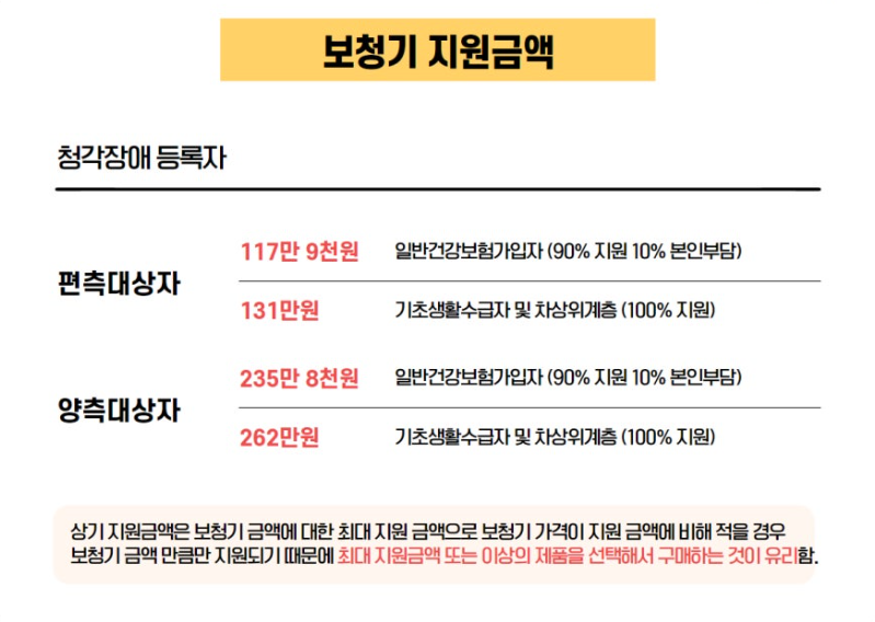 보청기 지원금 신청 시 환급금 편측기준 기초생활수급자 최대 131만원으로 책정되어 있으며, 건강보험 가입자는 10%의 본인부담금을 공제한 117만 9천원입니다. 단, 보청기 지원금은 현재 구입비용과 사후관리비용이 분리되어 지급됩니다.