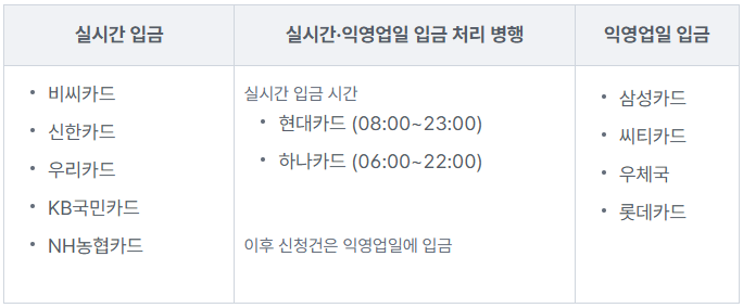 실제 카드포인트 계좌입금이 익영업일에 완료되더라도 입금 신청한 카드포인트에 대한 차감은 입금 신청 완료 시점을 기준으로 즉시 반영됩니다.